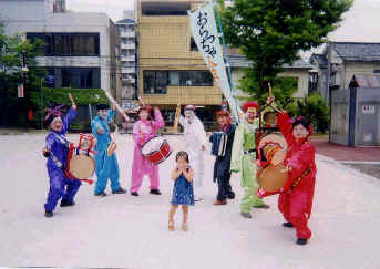 出場前に,近くの公園で練習しているところです.近所の子供が,ものめずらしそうにしていたので、一緒に写真に収まりました.いざ出陣!!