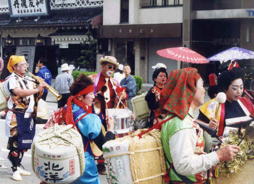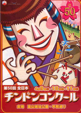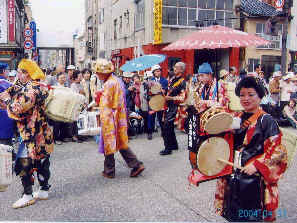 平成16年度は,富山市でちんどんコンクールが始まって50回目の記念すべきお祭りになります。我々,人生桜歌隊も今回が5回目の出場になり、張り切っています.今年のテーマは、「酒シリーズ」で富山の地酒を大いにPRしたいと企画しました.演奏も,酒にちなんだ曲を選びました。ふたり酒,夢追い酒,北酒場,日本全国酒飲み音頭,祝い酒などを練習中。