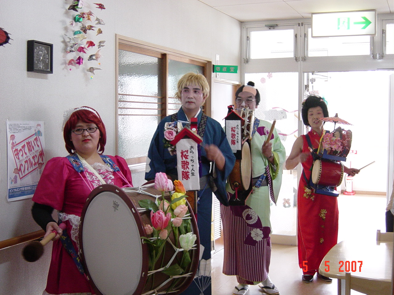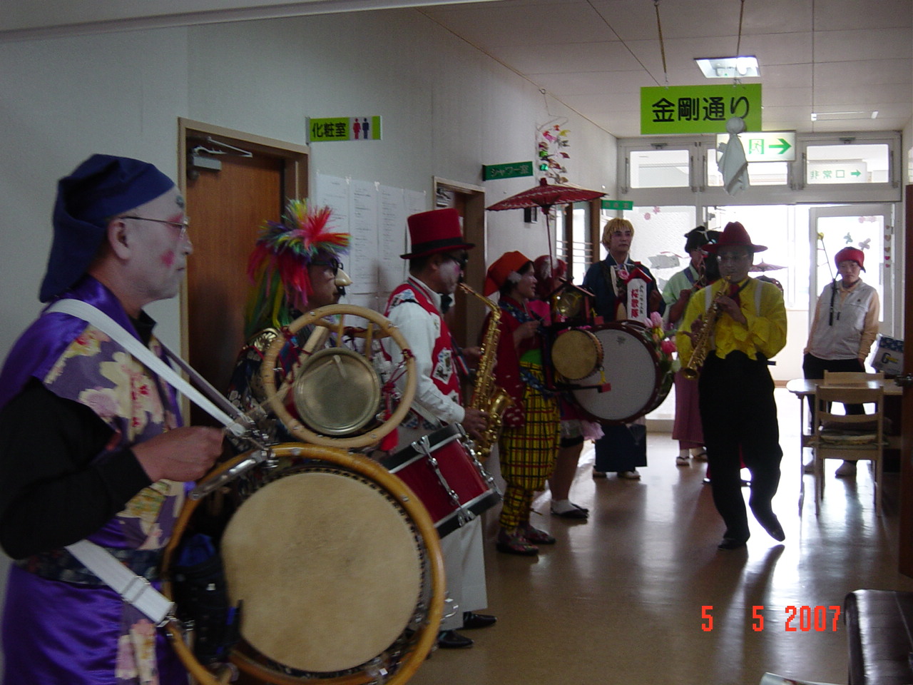 先ずは、金剛通りから演奏開始、ちんどんの音色に誘われて、部屋から皆さん出てこられました。