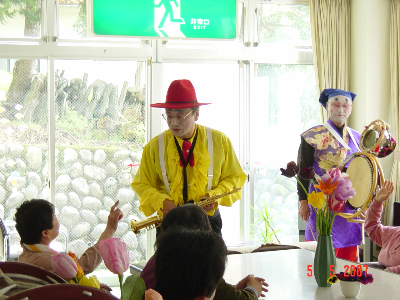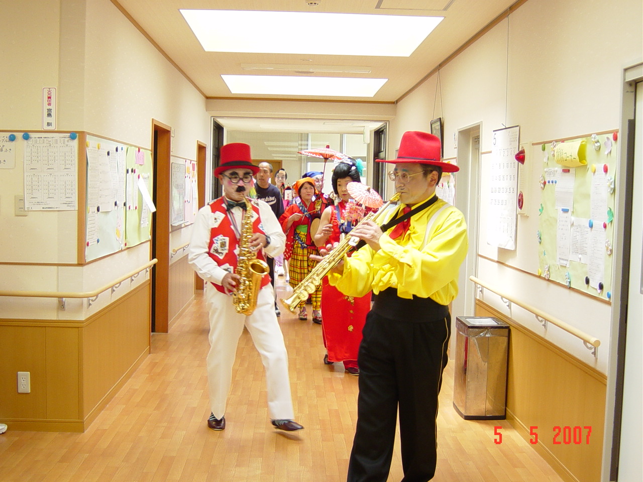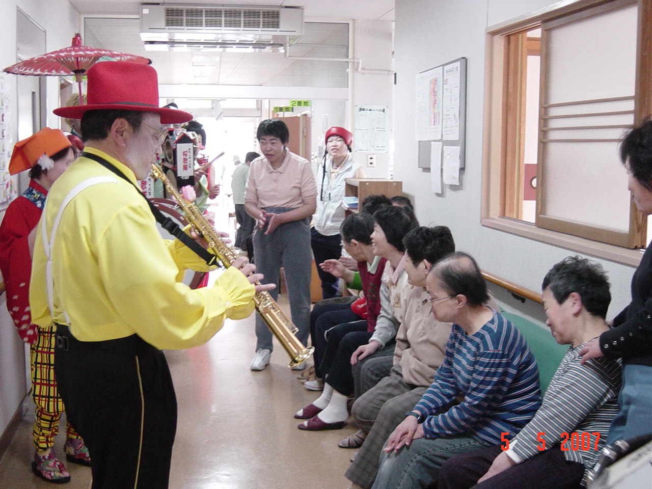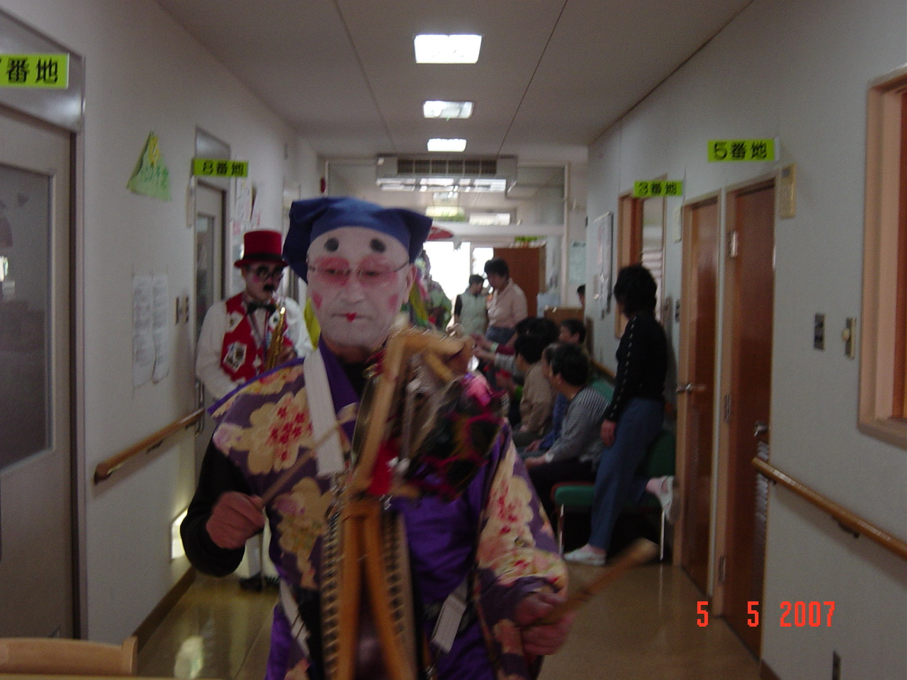 各棟、3から4曲を演奏し、次の棟へ移動して行きましたが、必ず何人かは、付いて来られました。