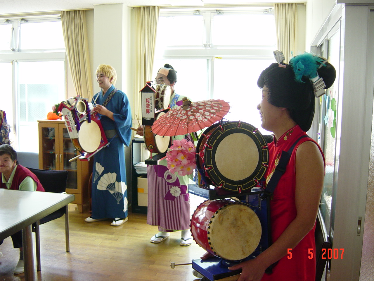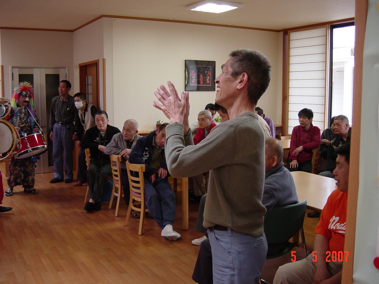 三番目の棟は、男性が主で、ここでは、おわら節やソーラン節、ドンパン節など民謡のリクエストでした。