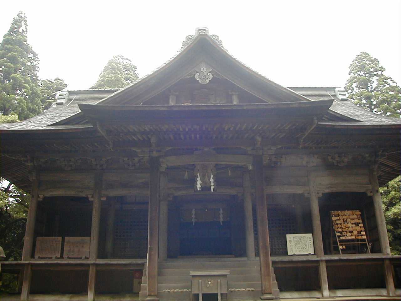社殿縁起 社殿全部が大正13年に国宝の指定を受けた。戦後再び重要文化財建造物の指定を受けている。本殿は慶長5年(1600年)前田利長が大聖寺出陣の戦勝祈願をして帰陣後寄進、釣殿は、慶長16年利長が高岡城在城の折、病に倒れその平癒祈願のためその子利常が寄進、拝殿、幣殿は利常夫人天徳院の産後平癒祈願のため改造寄進され、正保3年(1646年)に完成したもの。