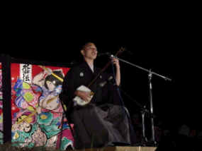 先陣をきって中山孝志氏の津軽三味線の演奏がありました。本場の大会で幾度となく入賞しただけに、さすがなかなか聴かせるものがありました。