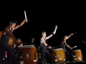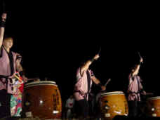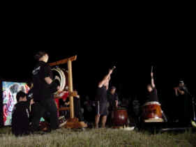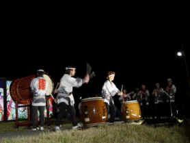花火が終わった後には、一瞬の静寂が訪れ、続いて、和太鼓の競演が行われました。